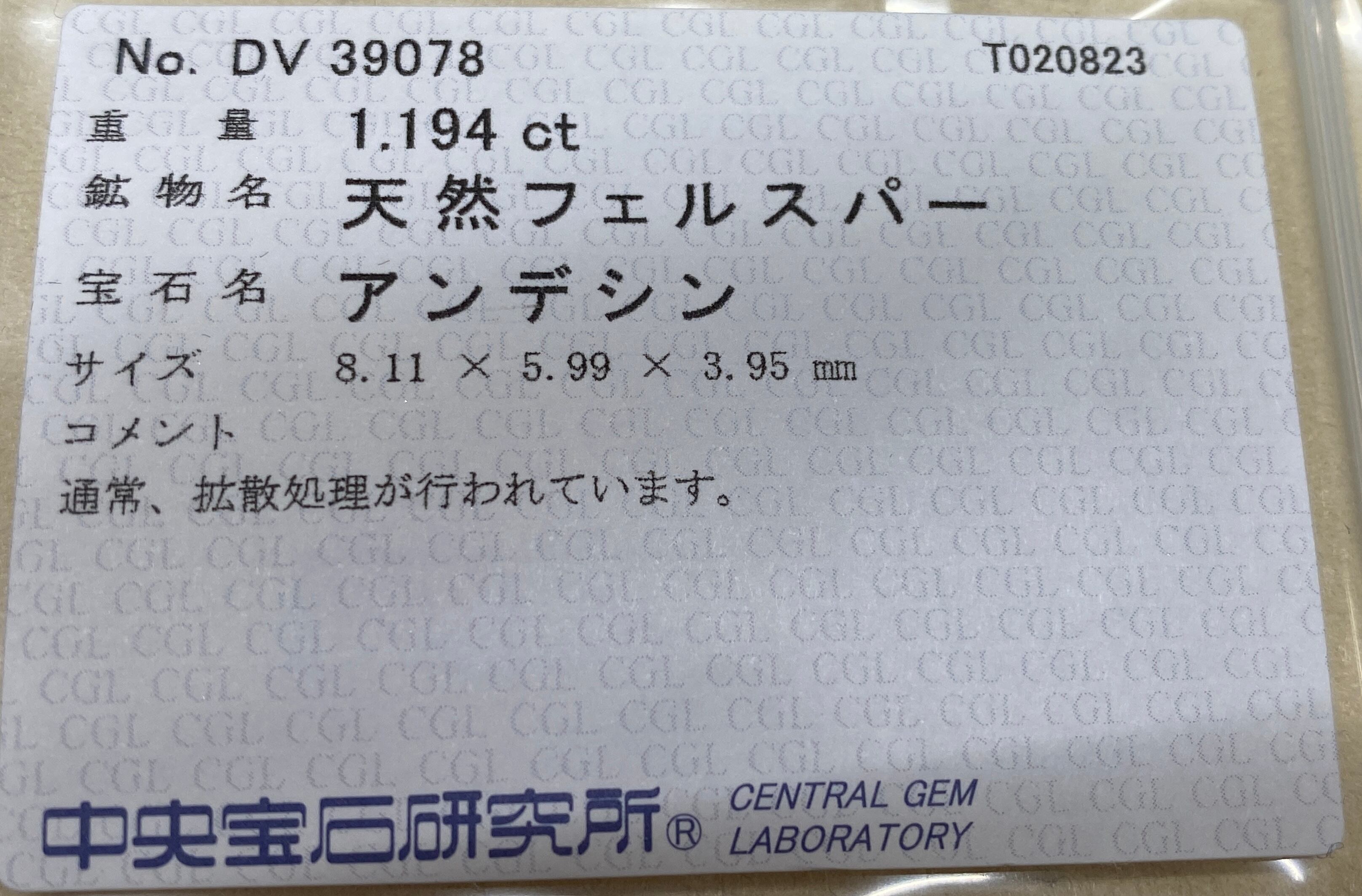 サンストーンの美しさを1.194ctの天然フェルスパー アンデシンでお楽しみください。