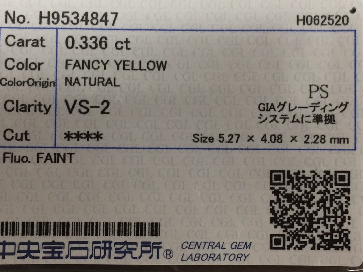 イエローダイヤモンド FANCYYELLOW VS-1 ペアシェープカット 0.336ct DA-009